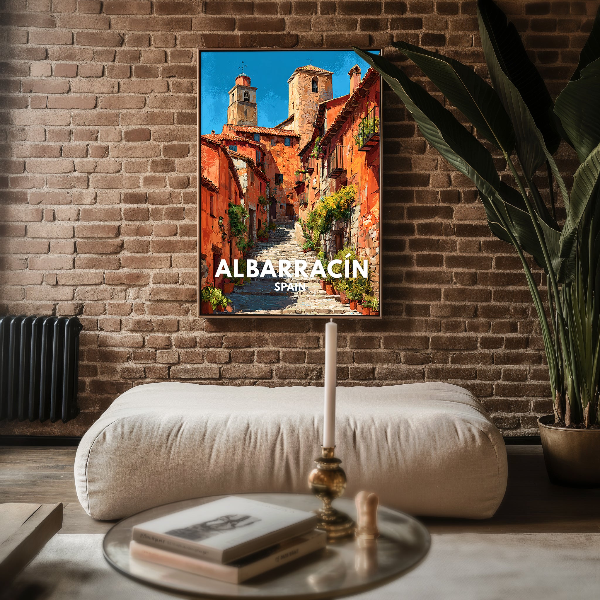 This striking art print captures the sunlit warmth of Albarracín, Spain—where terracotta rooftops and winding stone steps bring old-world charm to life. Perfect for lovers of hidden gems and romantic, historic streets, this piece adds European wanderlust to any room. Printed on luxurious 260gsm matte paper. Free shipping always included.