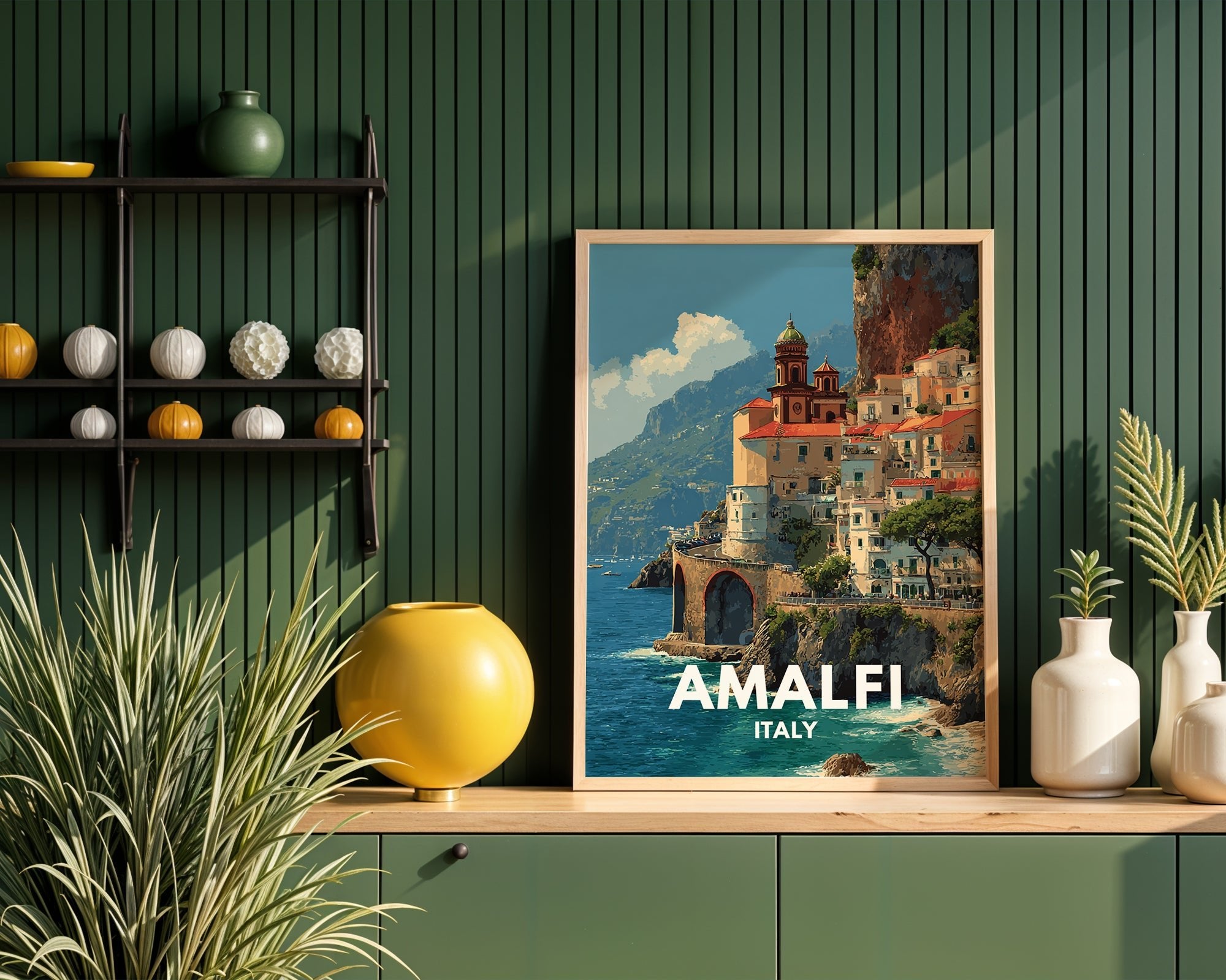 Bold cliffs. Sun-washed villas. Terracotta rooftops kissing the sea. This Amalfi poster is the Mediterranean dream in full color. Capture the charm and drama of Italy’s most famous coast. Printed on heavyweight 260gsm matte paper with free shipping.