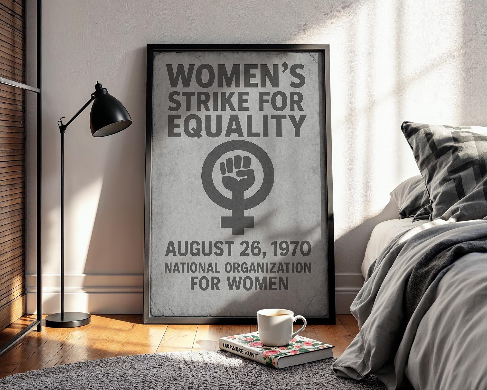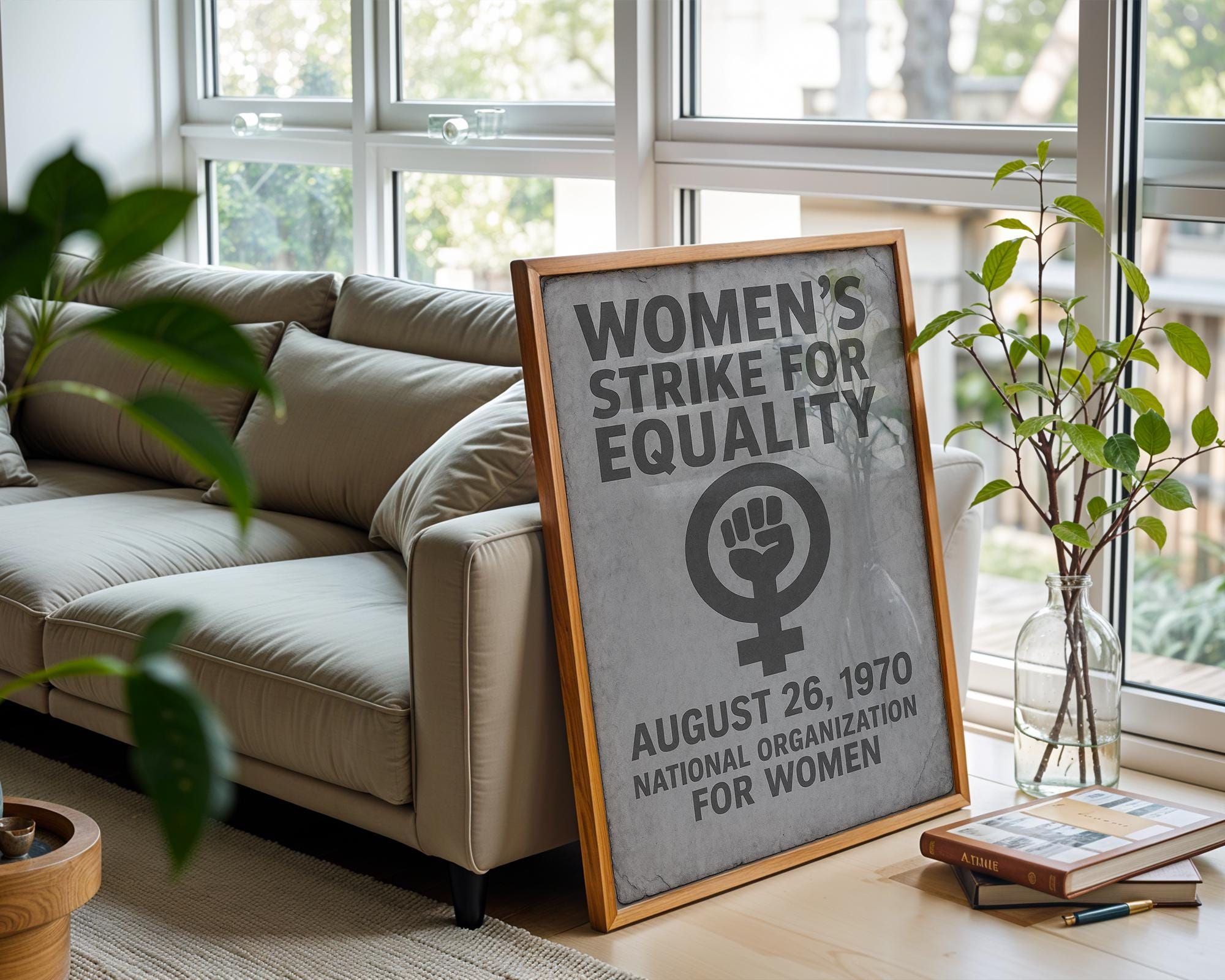 With its monochrome palette, raised fist symbol, and raw typography, this piece is more than decor-it's a statement. Perfect for home offices, classrooms, activist spaces, or feminist gallery walls. A reminder of how far we've come-and how far there is to go.
