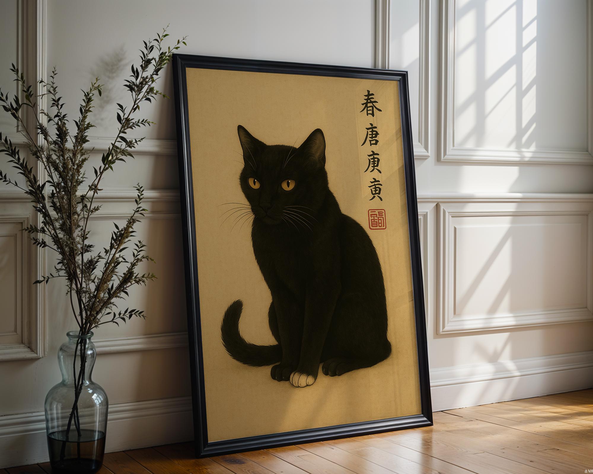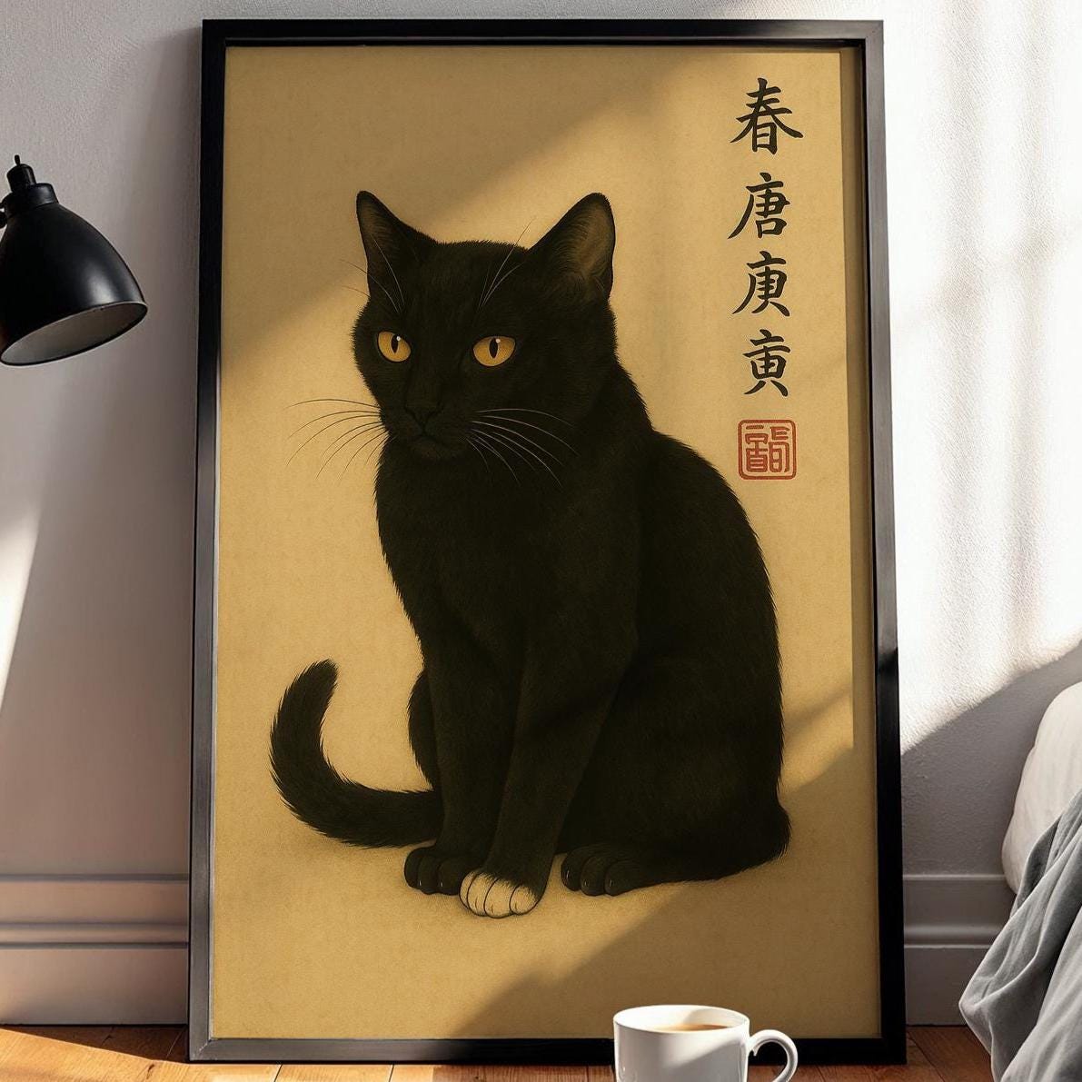 Whether you're into witchy decor, traditional Japanese aesthetics, or just love a moody cat moment, this print is designed to fit right in. It's equally at home in a cozy reading nook, modern entryway, or altar-like meditation space. Pair it with natural wood frames, soft neutral tones, or bold minimalist styling for full effect.