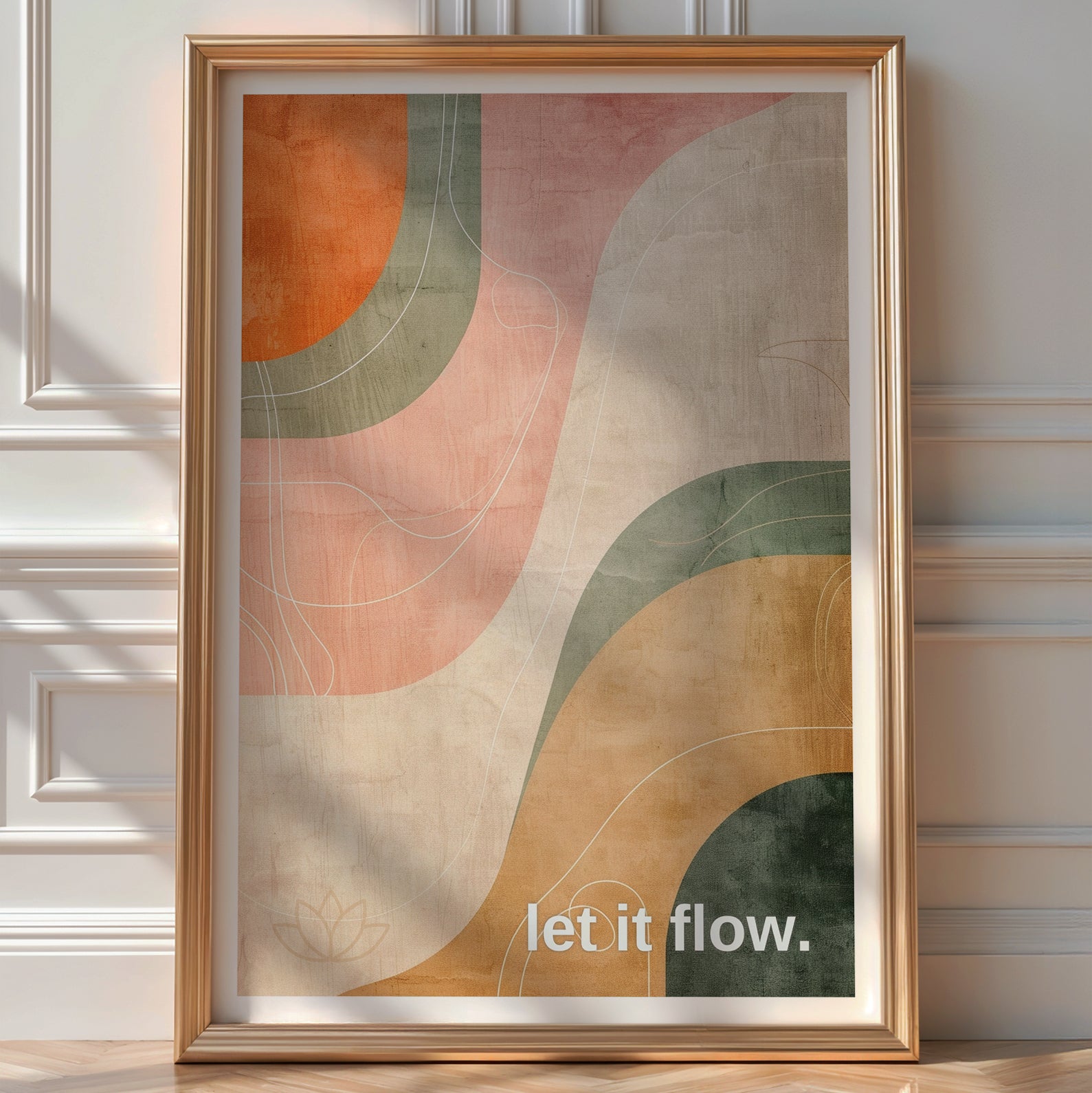 This calming abstract print was made for the overthinkers, the doers, the ones who carry the weight. "let it flow." encourages release, movement, and ease. With soft peach, olive, and ivory curves layered over a textured canvas backdrop, it whispers instead of shouts.