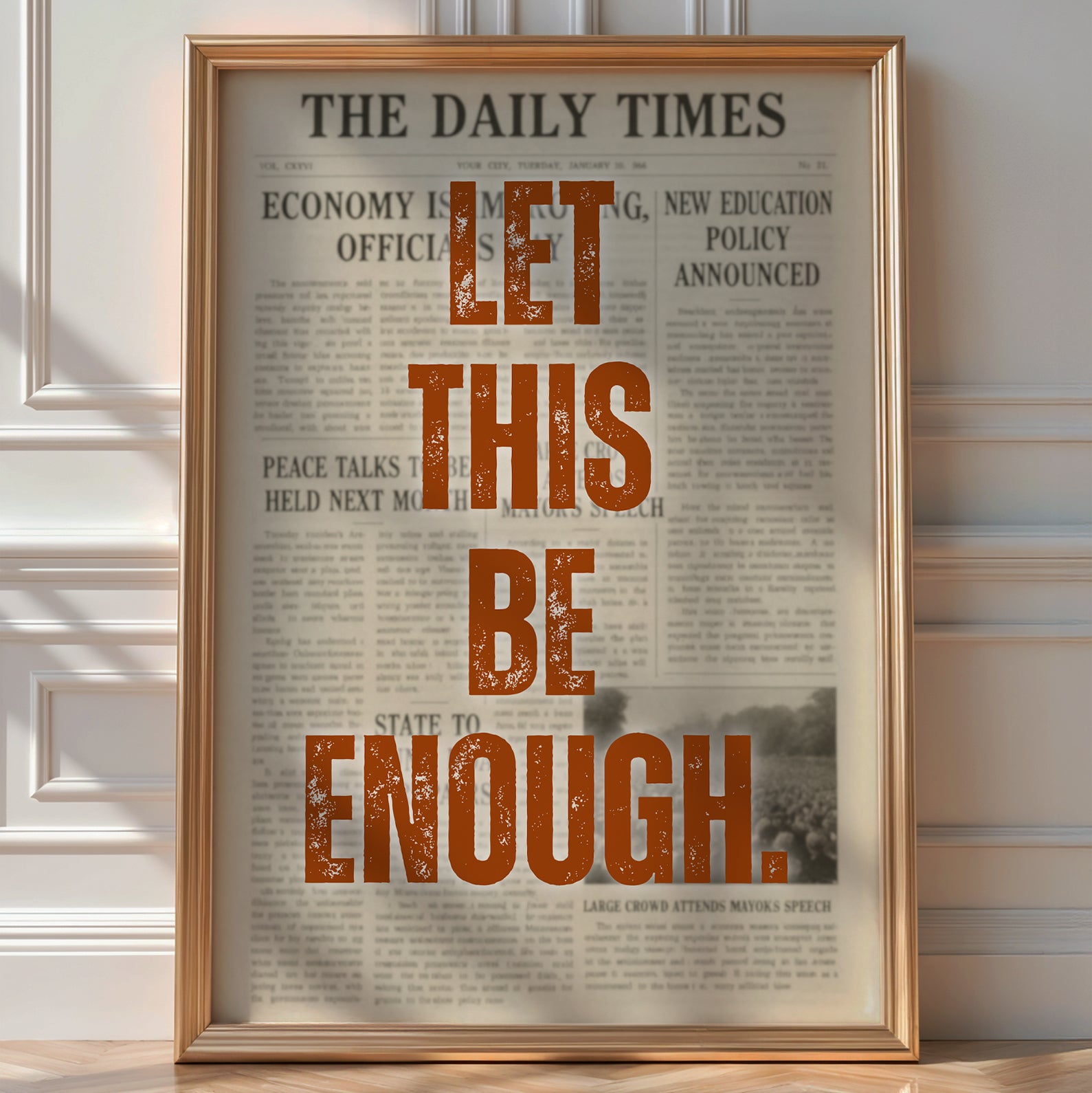 Simple. Raw. Unapologetically honest. This vintage newspaper-style poster features the bold phrase Let This Be Enough—a quiet reminder, a firm boundary, or a whispered plea. However you read it, it lands.