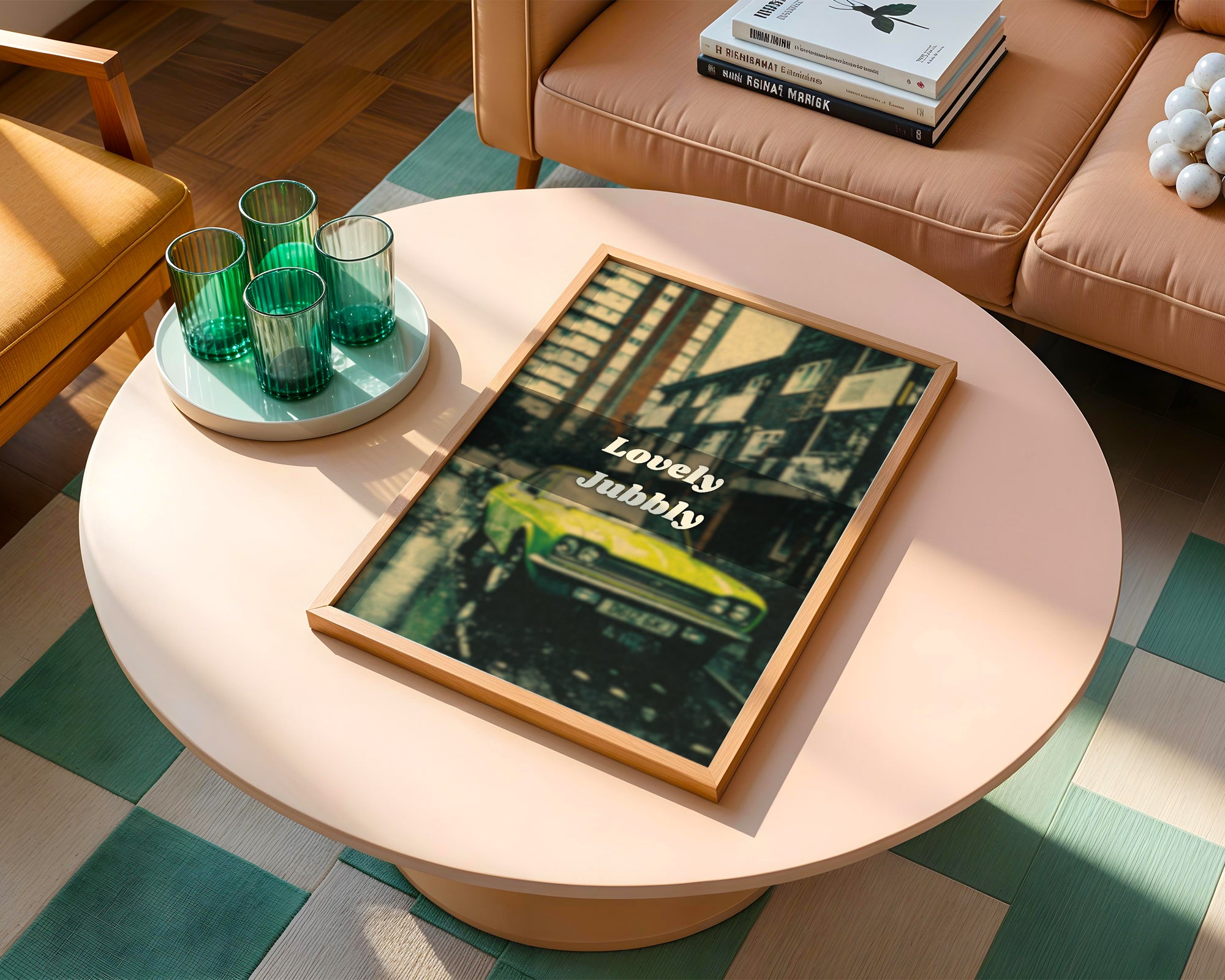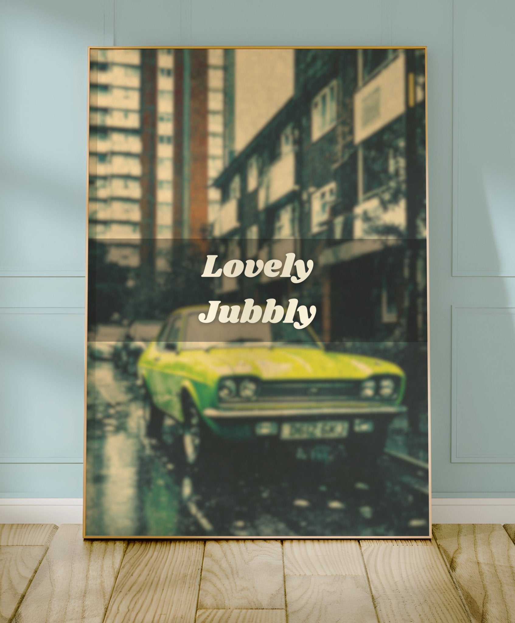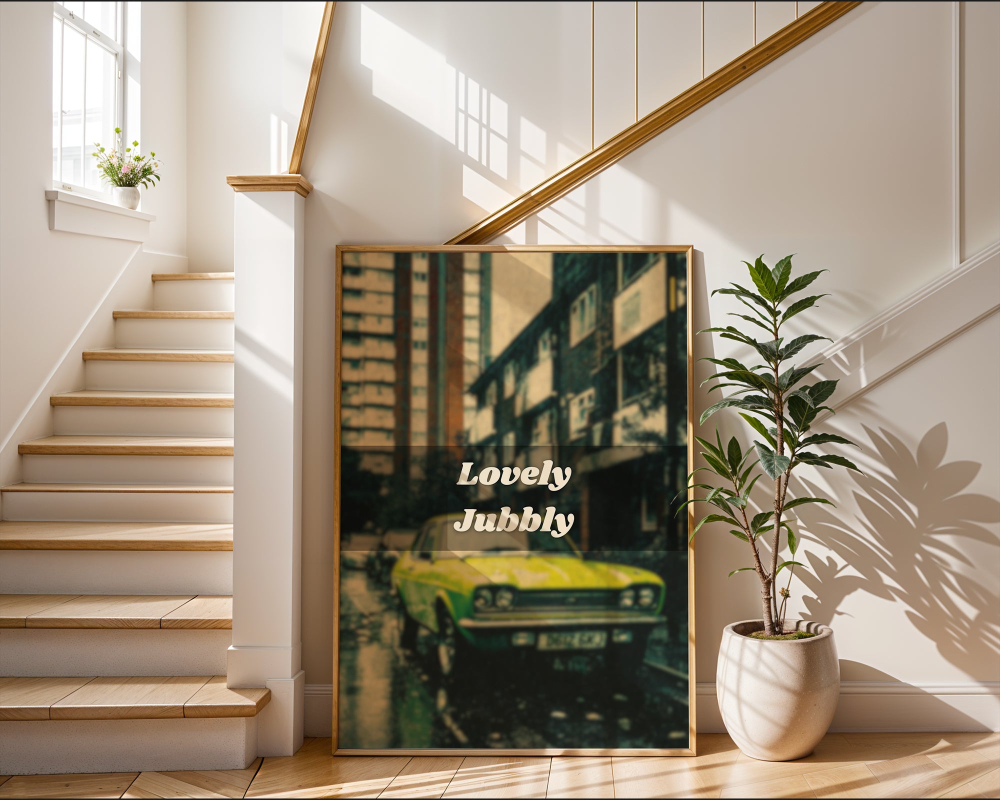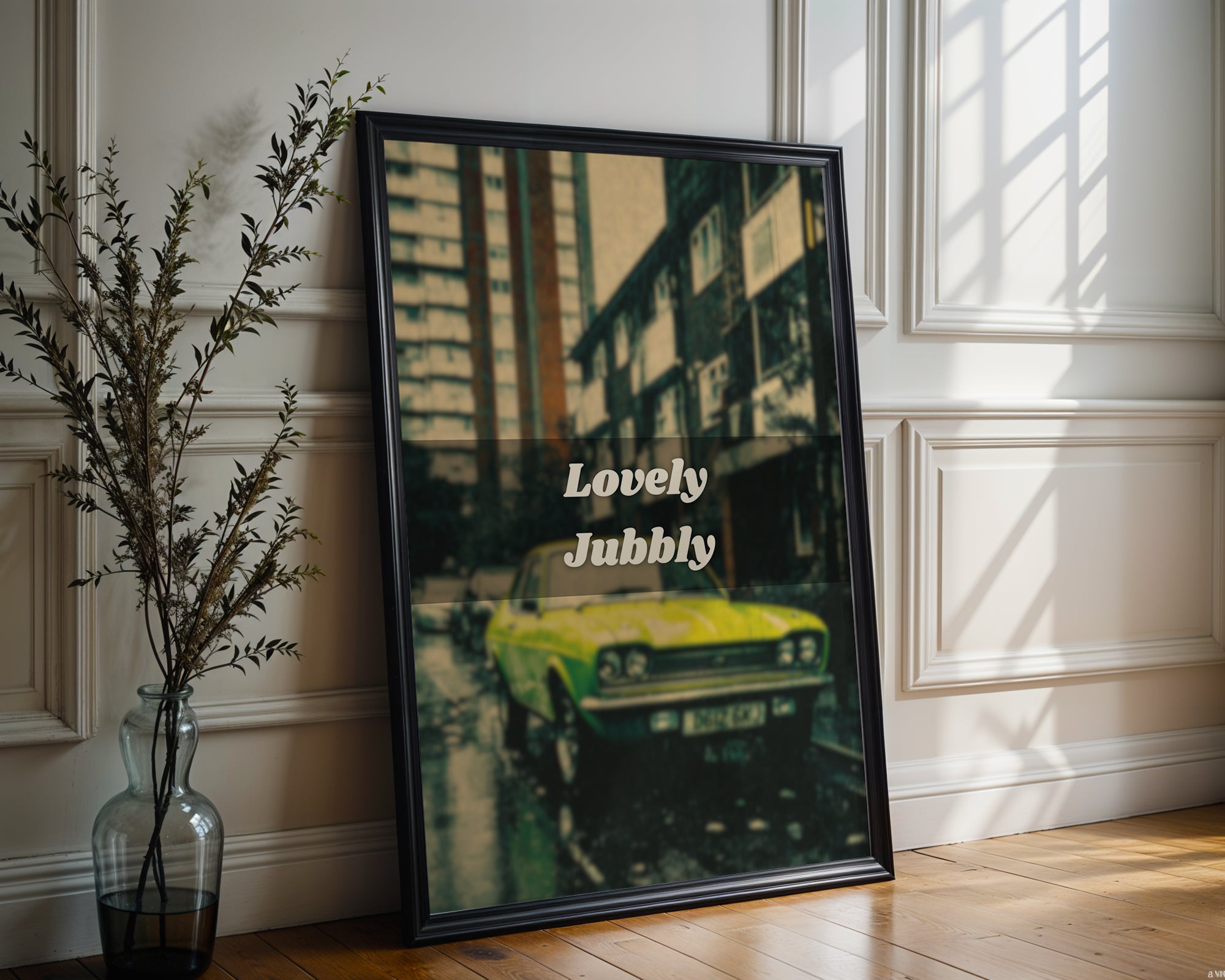 Nostalgia, but make it stylish. This “Lovely Jubbly” print captures a vibrant green retro car against classic tower blocks, wrapped in soft vintage tones. A love letter to British street culture and timeless motors. Printed on 260gsm matte paper for that gallery-quality finish. Free shipping, always.
