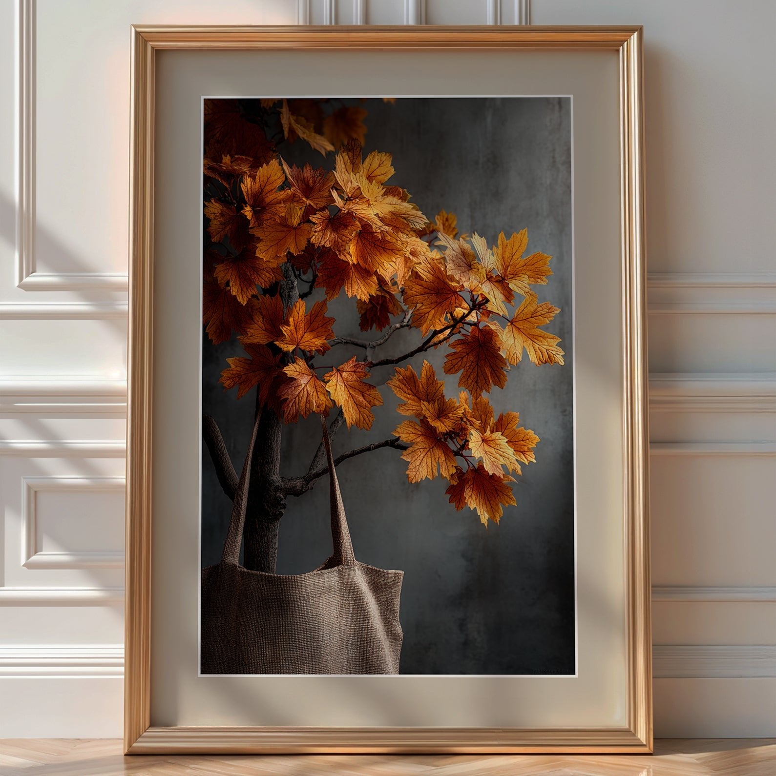 A branch of burnished maple leaves meets a simple linen tote—elegant, modern, and quietly poetic. Printed on 260gsm paper for crisp edges and rich color. The minimalist way to say “it’s fall now.” Free shipping included.
