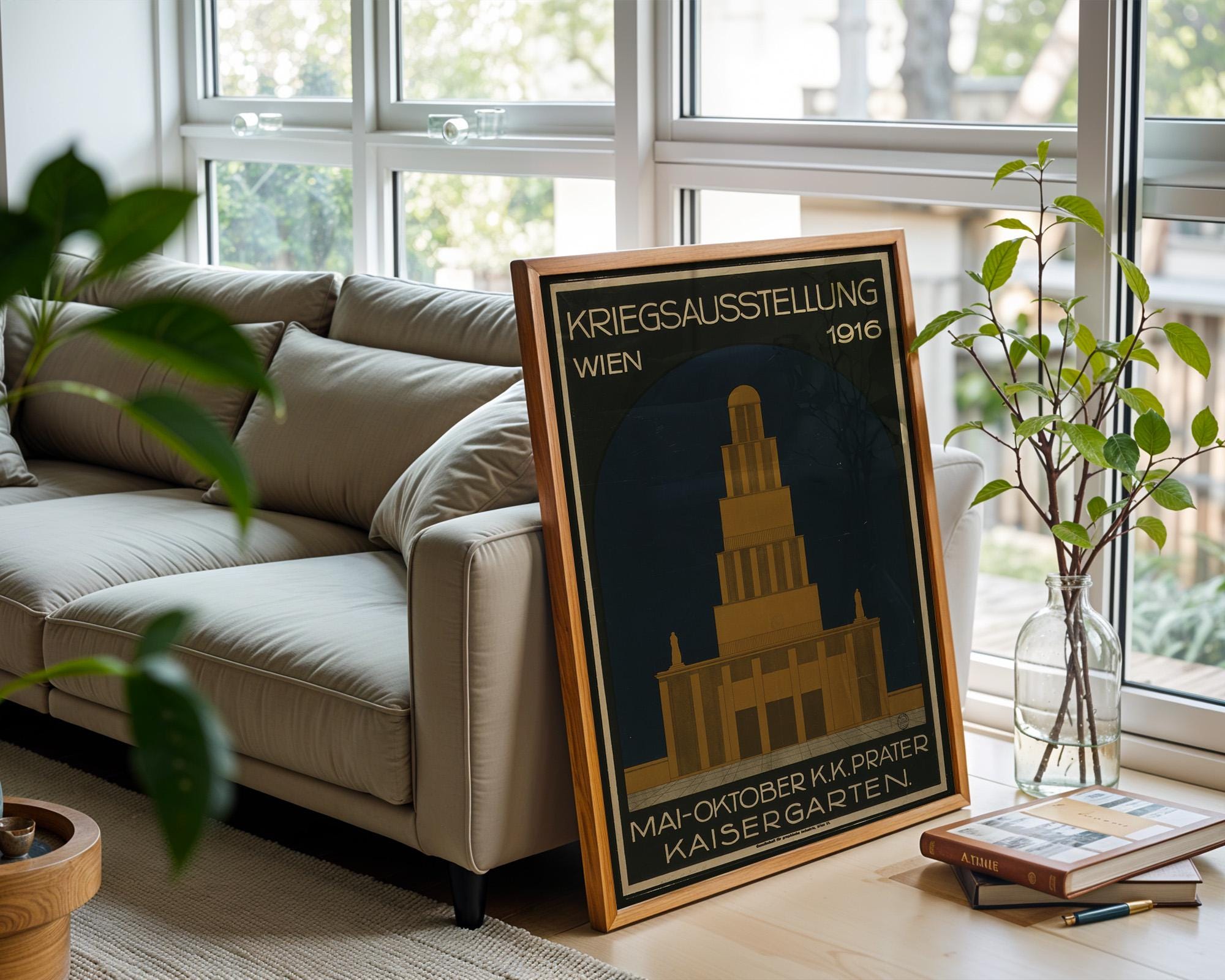 This stark, stylized poster from a 1916 war exhibition in Vienna showcases clean lines, bold color blocks, and architectural drama. Bauhaus fans and design heads, this one's for you. Printed on museum-grade paper. Ships free. Looks like power.