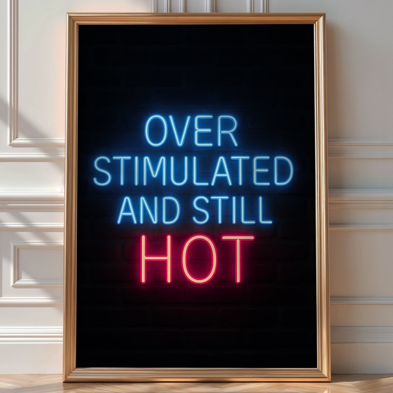 Anxiety? Exhaustion? Internal chaos? Still hot, thanks. This neon print captures peak Gen Z honesty in glowing blue and pink, perfect for your bedroom, therapy zone, or desk dungeon.