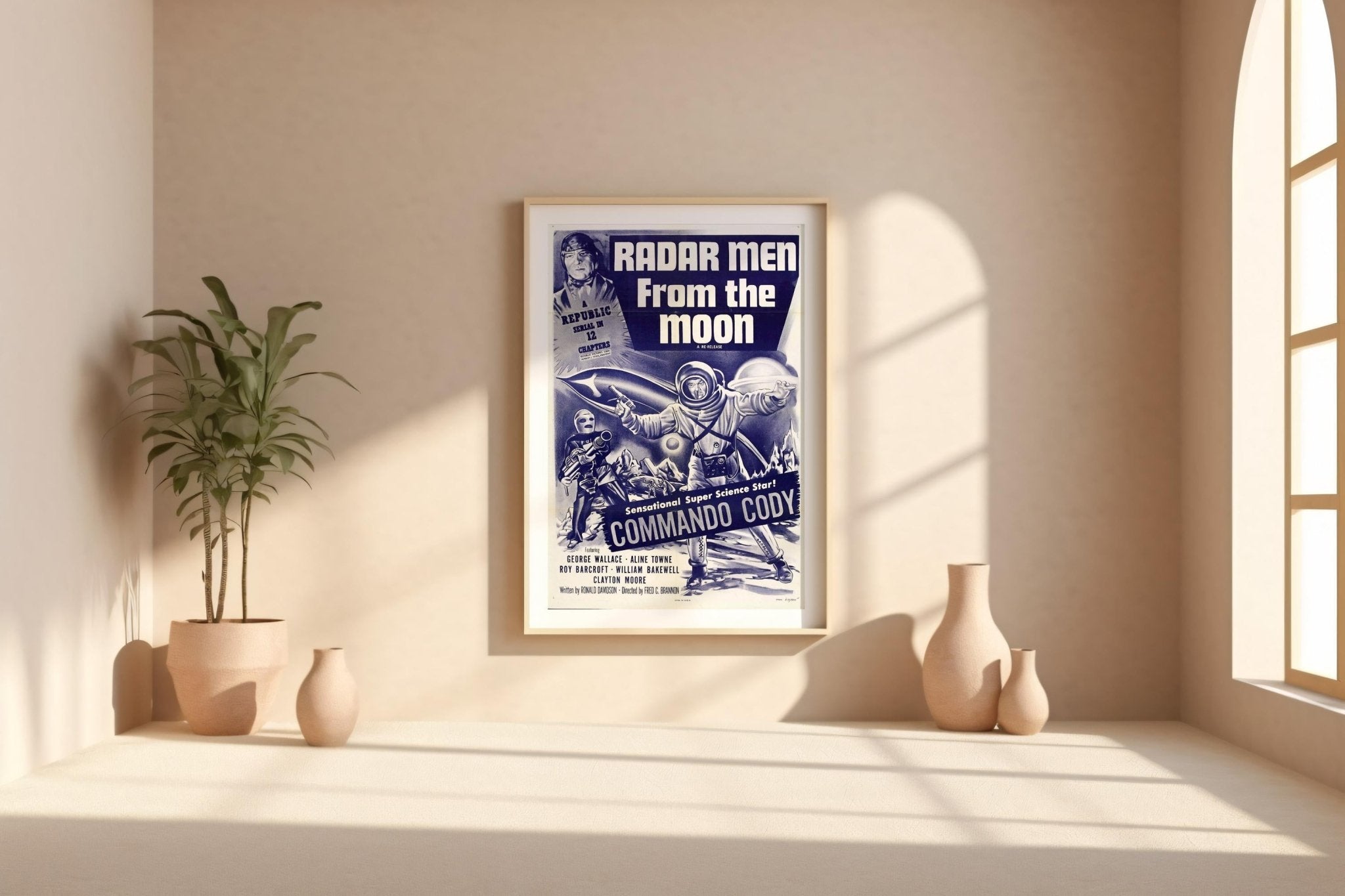 A perfect reprint of the 1950s sci-fi serial Radar Men from the Moon, this poster captures the boldness of space-age imagination and atomic-era styling. A must for vintage sci-fi collectors, geek wall shrines, or anyone into retro futurism. Printed on archival paper, ships free, comes with rocket-fueled nostalgia.