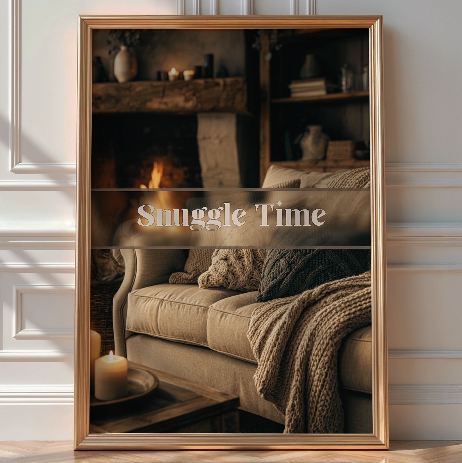 Candles glowing, knits piled high, fire lit—permission to hibernate granted. This moody interior print turns any room into a cuddle zone. Printed on 260gsm premium paper with long-lasting inks. Hang it, exhale, repeat. Free shipping always.