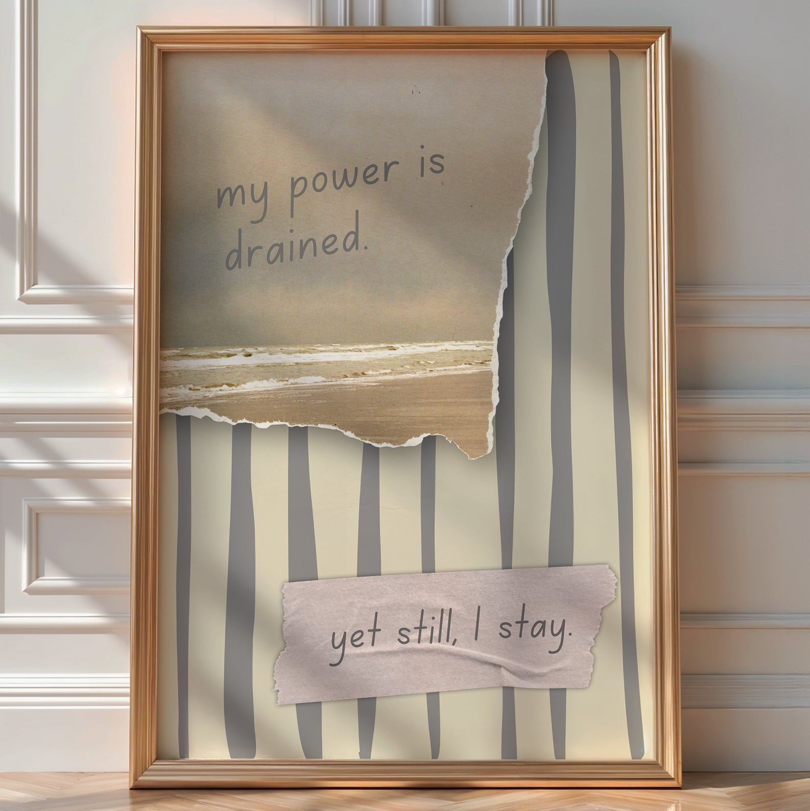 Soft, torn edges. Washed-out waves. A quiet kind of resilience. This emotional art print captures the ache of exhaustion—and the stubborn beauty of staying. A layered visual that feels like a journal page, perfect for anyone who’s been through it and kept going anyway.