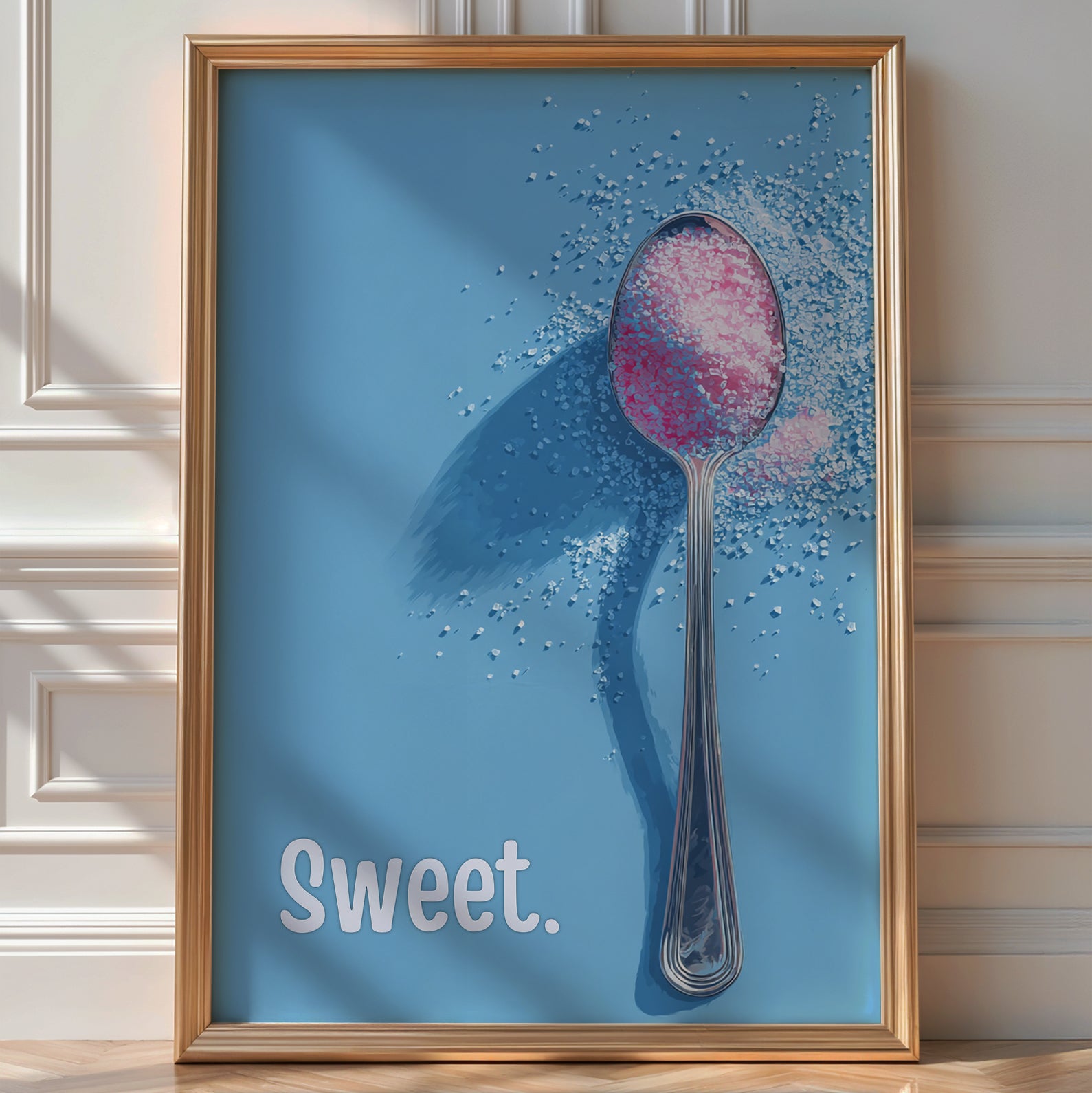 Sometimes simple says it all. The “Sweet.” poster features a spoon holding sugar or candy crystals—just enough texture, just enough contrast, maximum sweetness. This art print bridges minimalist design with dessert‑love, bringing a whisper of sugar into your décor without going over the top.