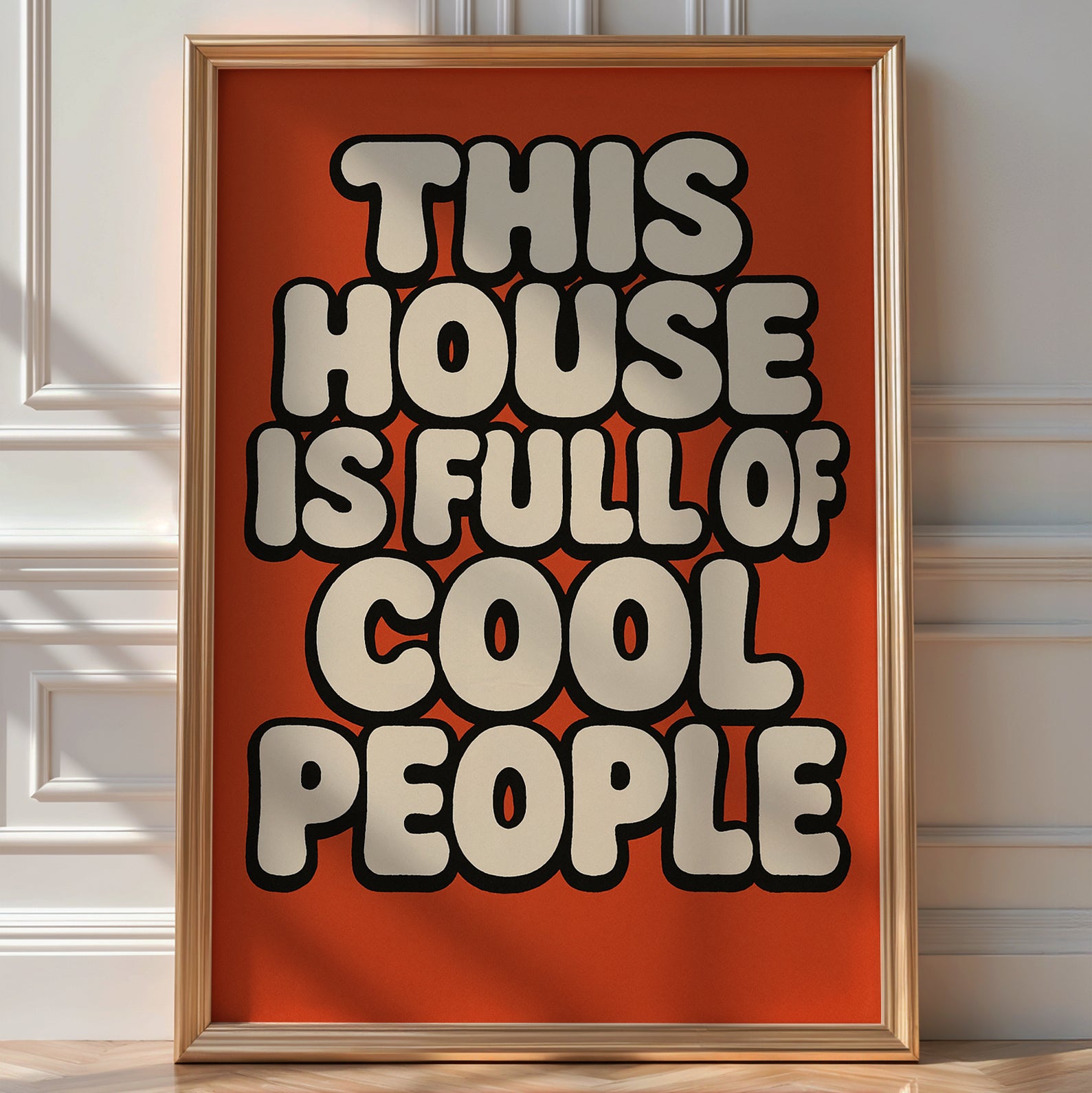 Loud, proud, and vibing. This bold retro-style poster turns your wall into a confidence zone with its punchy lettering and cheeky message: This house is full of cool people. Perfect for housewarmings, dorms, and self-aware interiors.