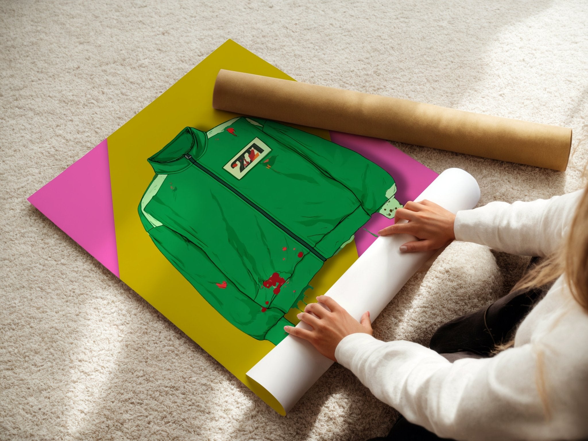 If you know, you know ;) Streetwear meets art show—get ready to rock your walls with the Urban Paint‑Splatter Track Jacket Art Print. This bold piece features a stylized green track jacket, splashed with rebellious reds and drips of fresh drip, captured in sharp digital illustration. It's printed on luxe 260gsm matte paper, so every paint detail, brush stroke, and grit‑in‑the‑fabric nuance hits your eye—and your soul. As always: free shipping, because style shouldn’t cost extra.