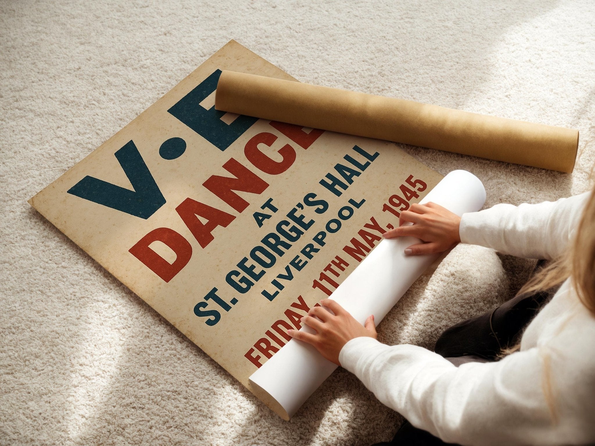 Originally created for a Liverpool celebration just days after the official end of hostilities in Europe, this print captures a moment in time when relief, resilience, and rhythm all came together. It's a real piece of history-and it looks damn good on a wall.