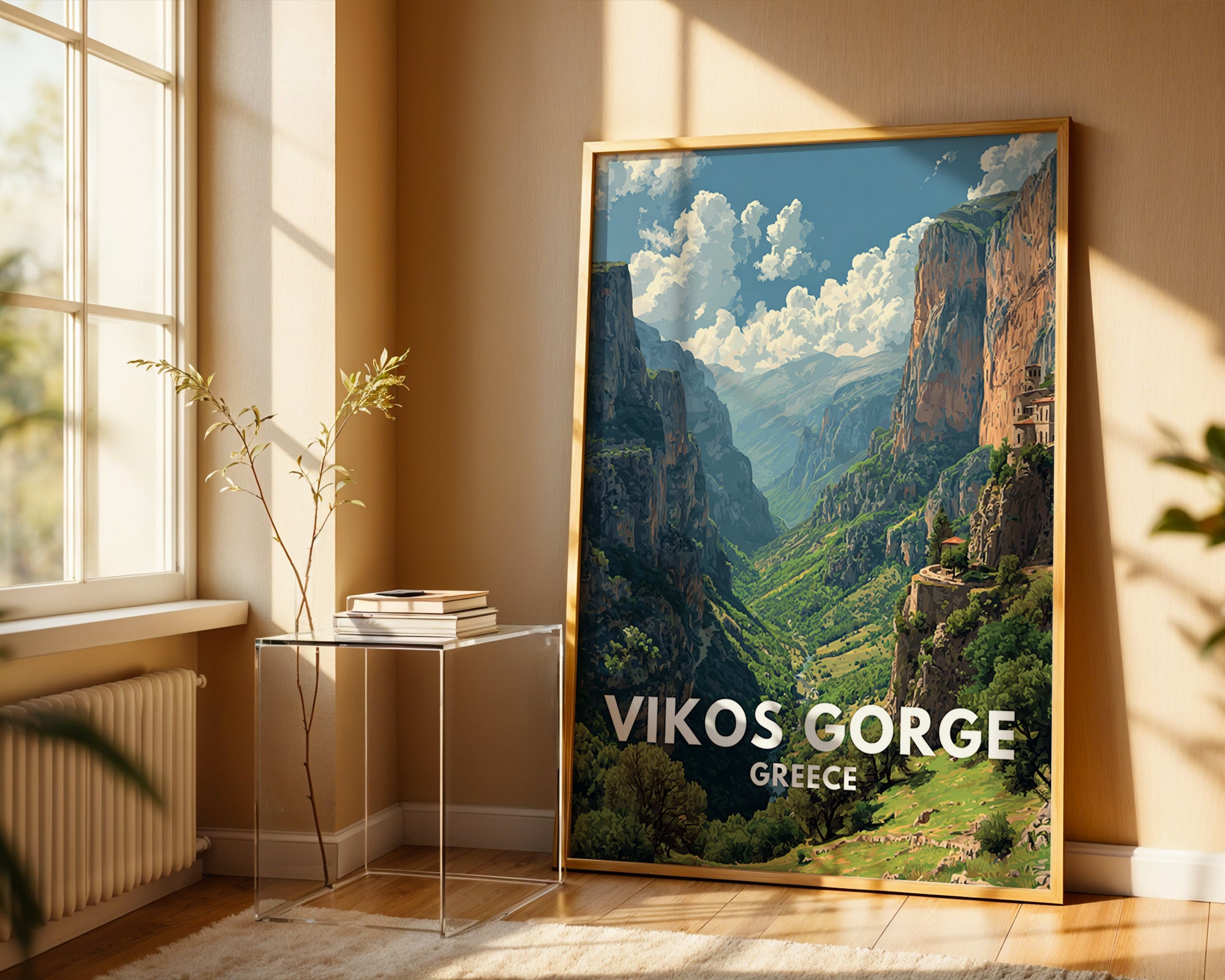 A deep cut through myth and mountain—this Vikos Gorge poster showcases one of Greece’s most jaw-dropping natural wonders. Lush, wild, and dramatic, it’s the kind of art that makes you want to pack a bag. Printed on 260gsm matte paper. Ships free.