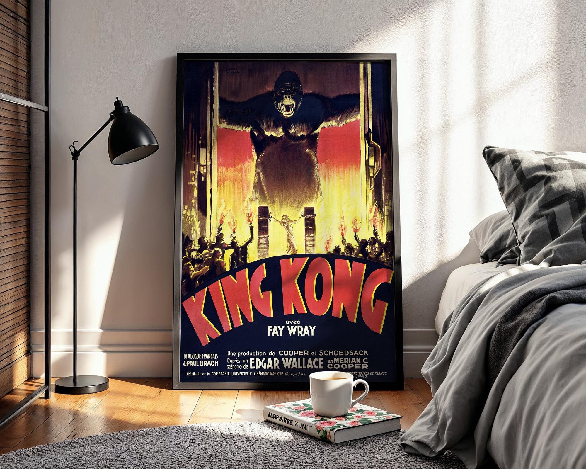 Vintage Movie Poster Print – King Kong French Cinema Reprint – 1930s Giant Gorilla & Fire Scene with Classic Film Artwork - Just Great Posters