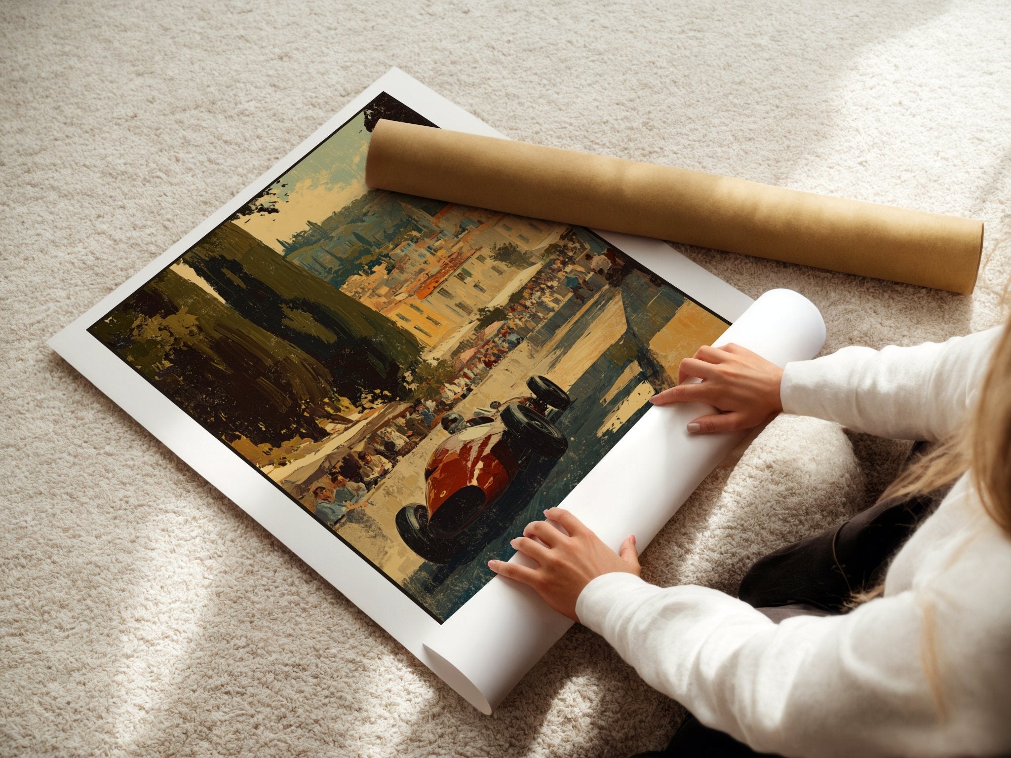🎨 Printed on thick 260gsm archival paper, this poster delivers vivid color, rich detail, and a tactile matte finish. The painterly, vintage-inspired design makes it feel like a rare find from an old-world racing archive.