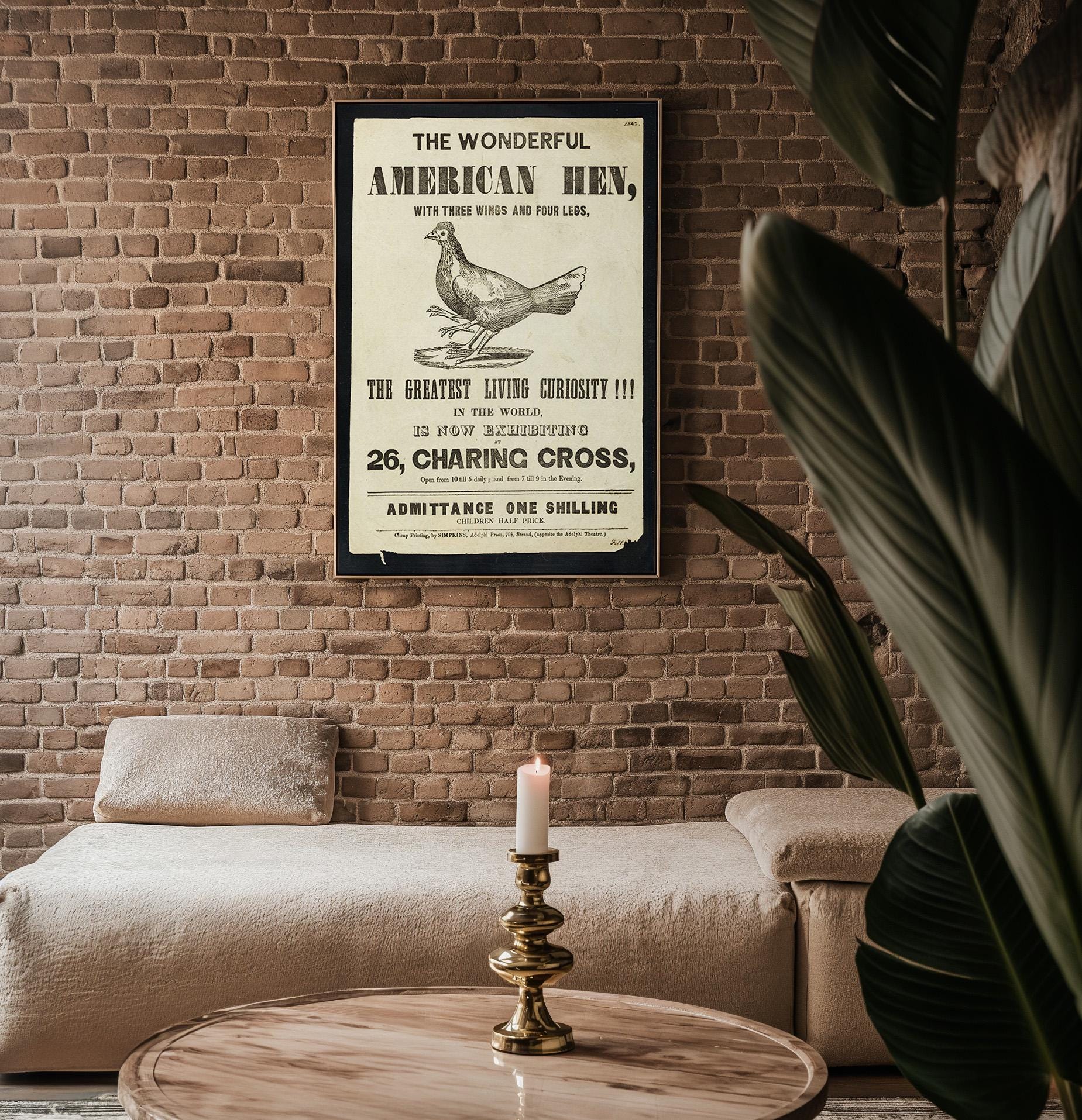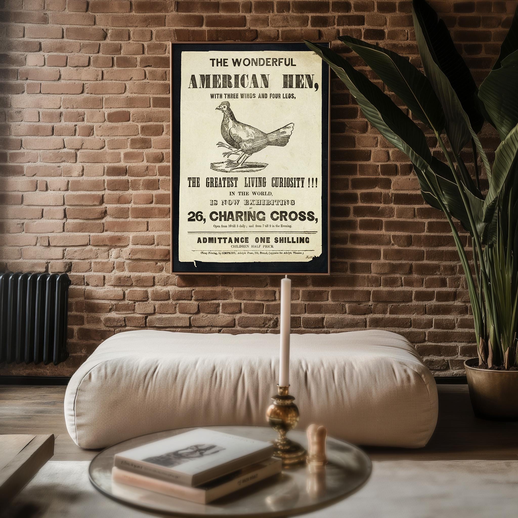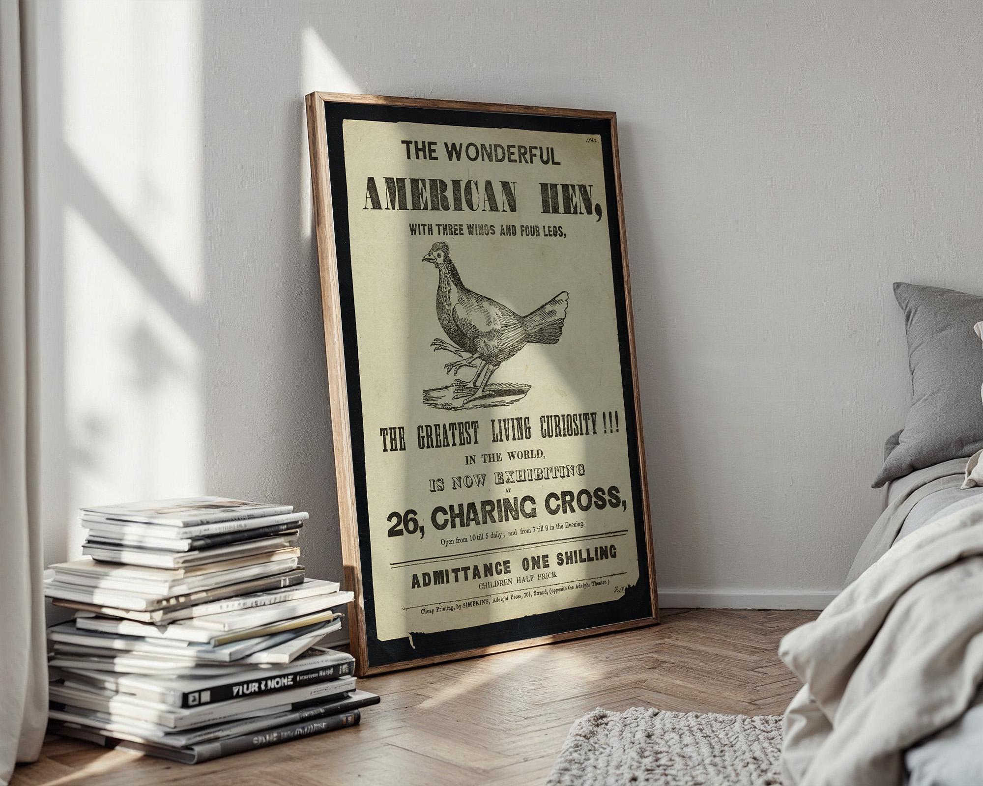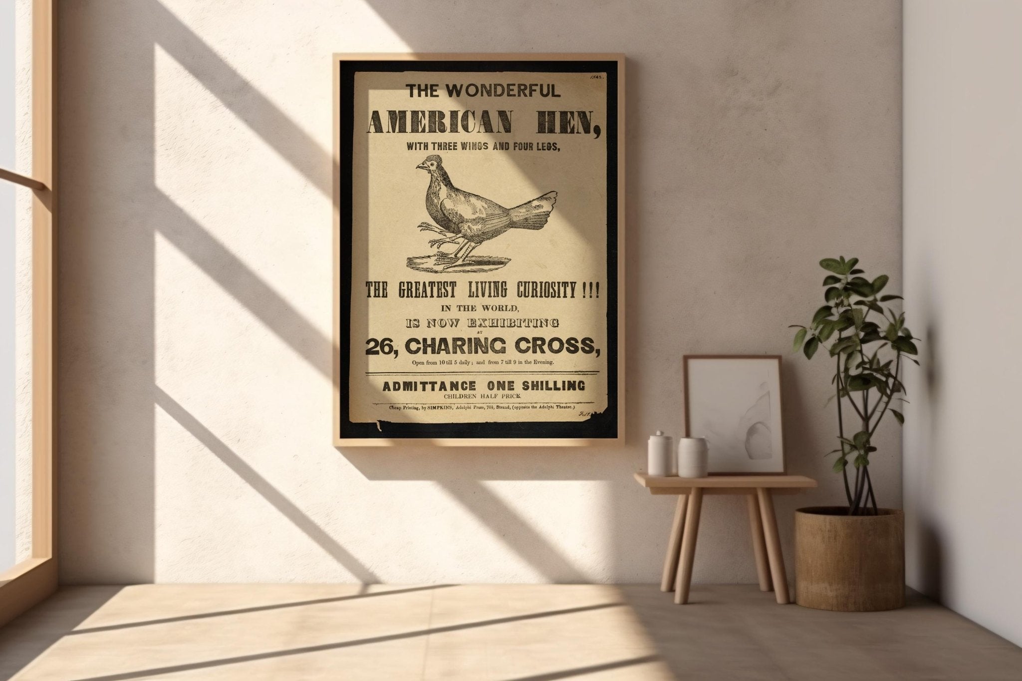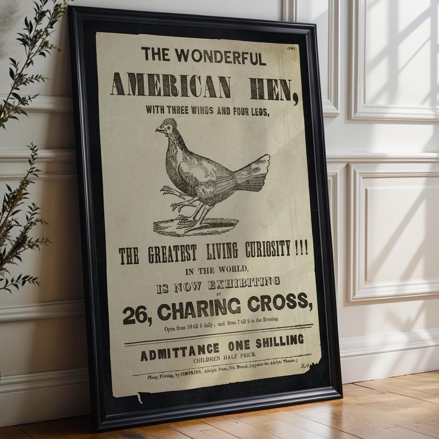 This delightfully weird 19th-century-style print features a three-winged, four-legged hen. Yes, really. Equal parts strange and stunning, this print is a must for fans of oddities, sideshow history, or conversation-starting wall art. Printed on archival paper and shipped free-because weird should be easy to hang.