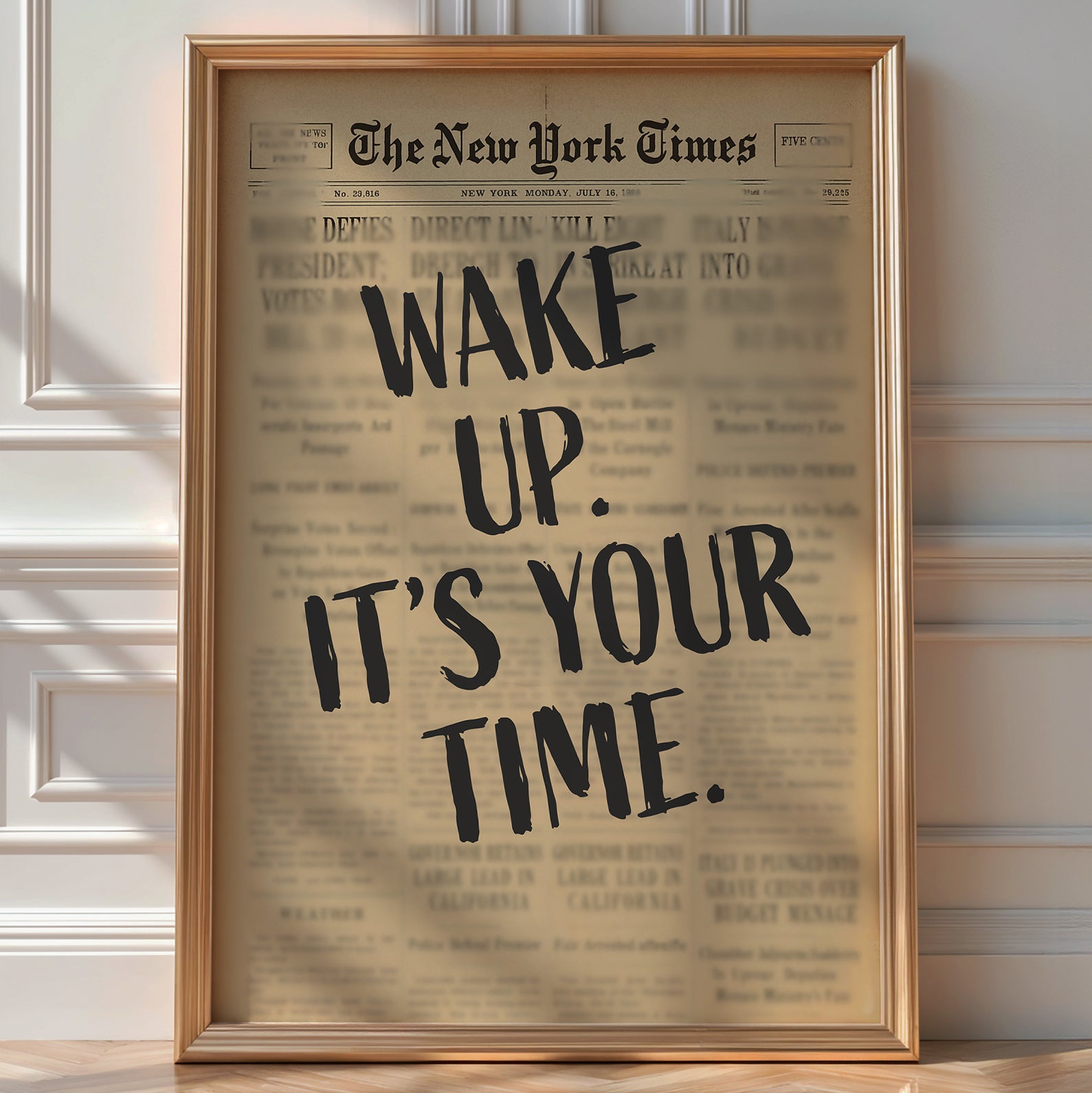 No fluff. Just a straight-up call to rise. This striking poster drops a modern power phrase over a retro newsprint background, bringing urgency, boldness, and vintage grit to any space. Perfect for goal-getters, creatives, and anyone ready to stop waiting for the green light.