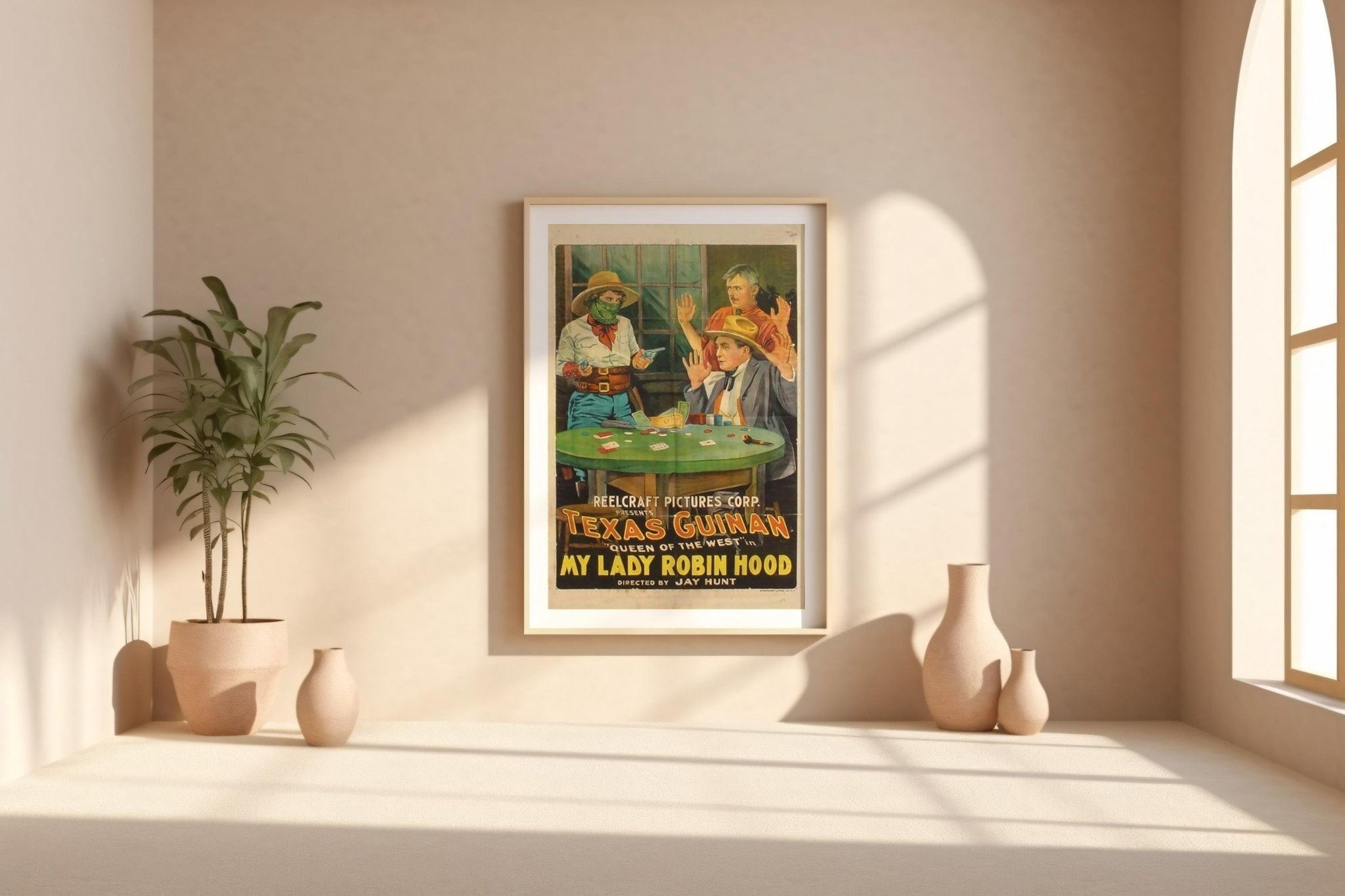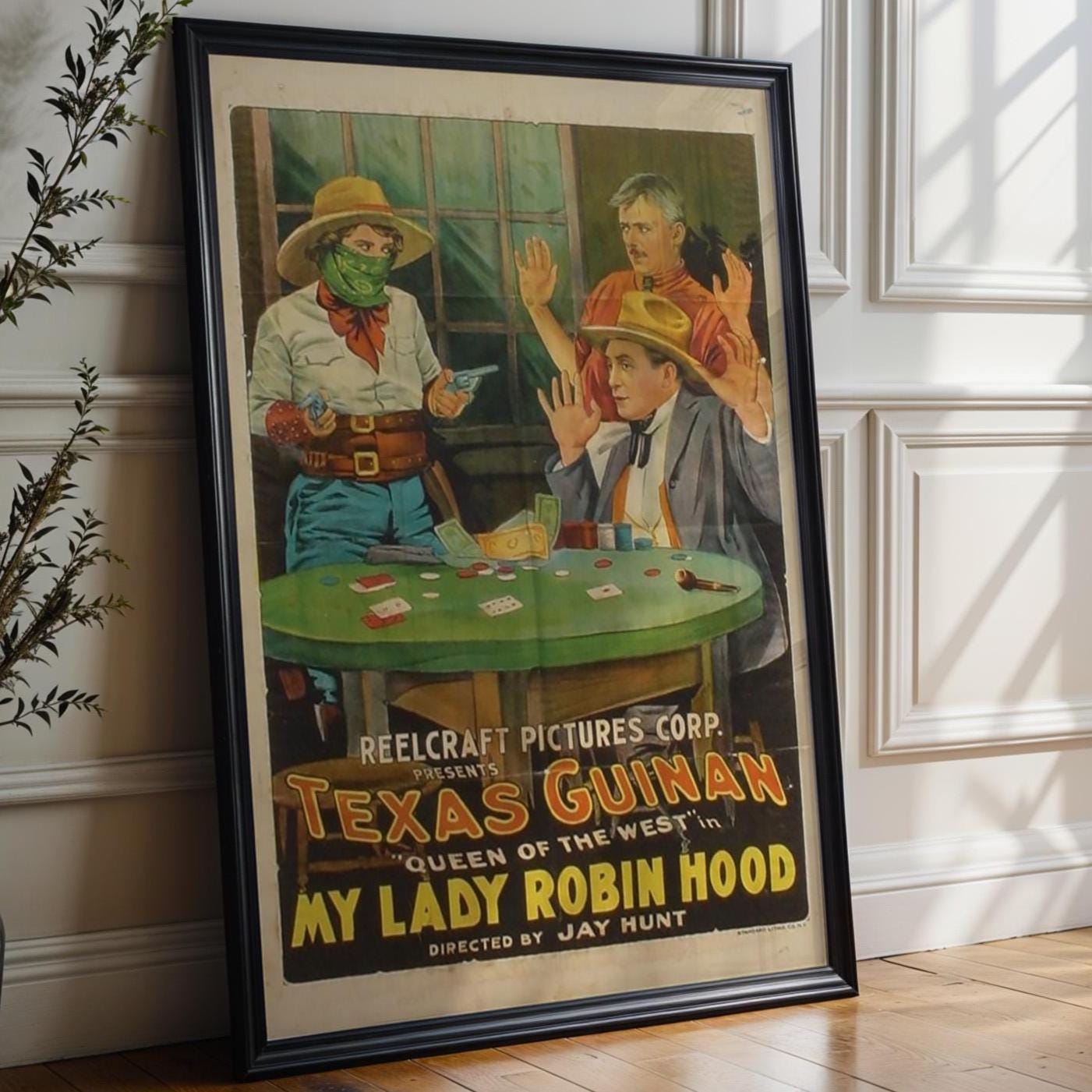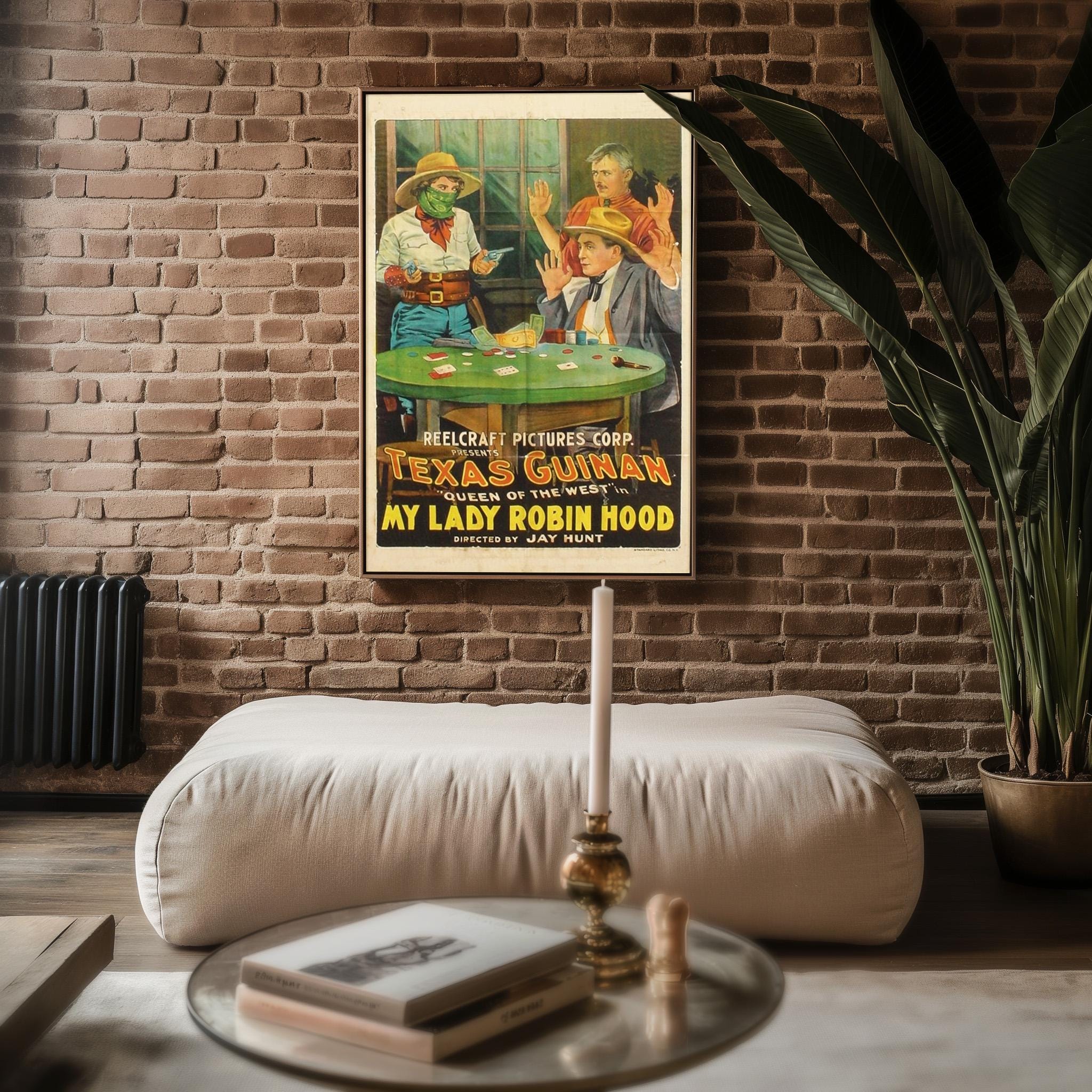 This bold reprint of My Lady Robin Hood captures 1920s cinema at its most dramatic. Guinan pulls a gun at a poker table in true outlaw fashion. Perfect for vintage movie lovers, wild west fans, or anyone who appreciates a woman in charge. Printed beautifully. Ships free.
